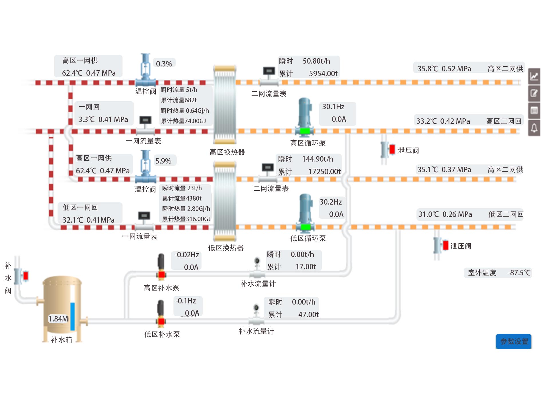 热源数据、热网数据、热力站数据、楼控数据和热用户数据汇总到数据中心,构建大数据平台,实时采集、存储、分析、展示。